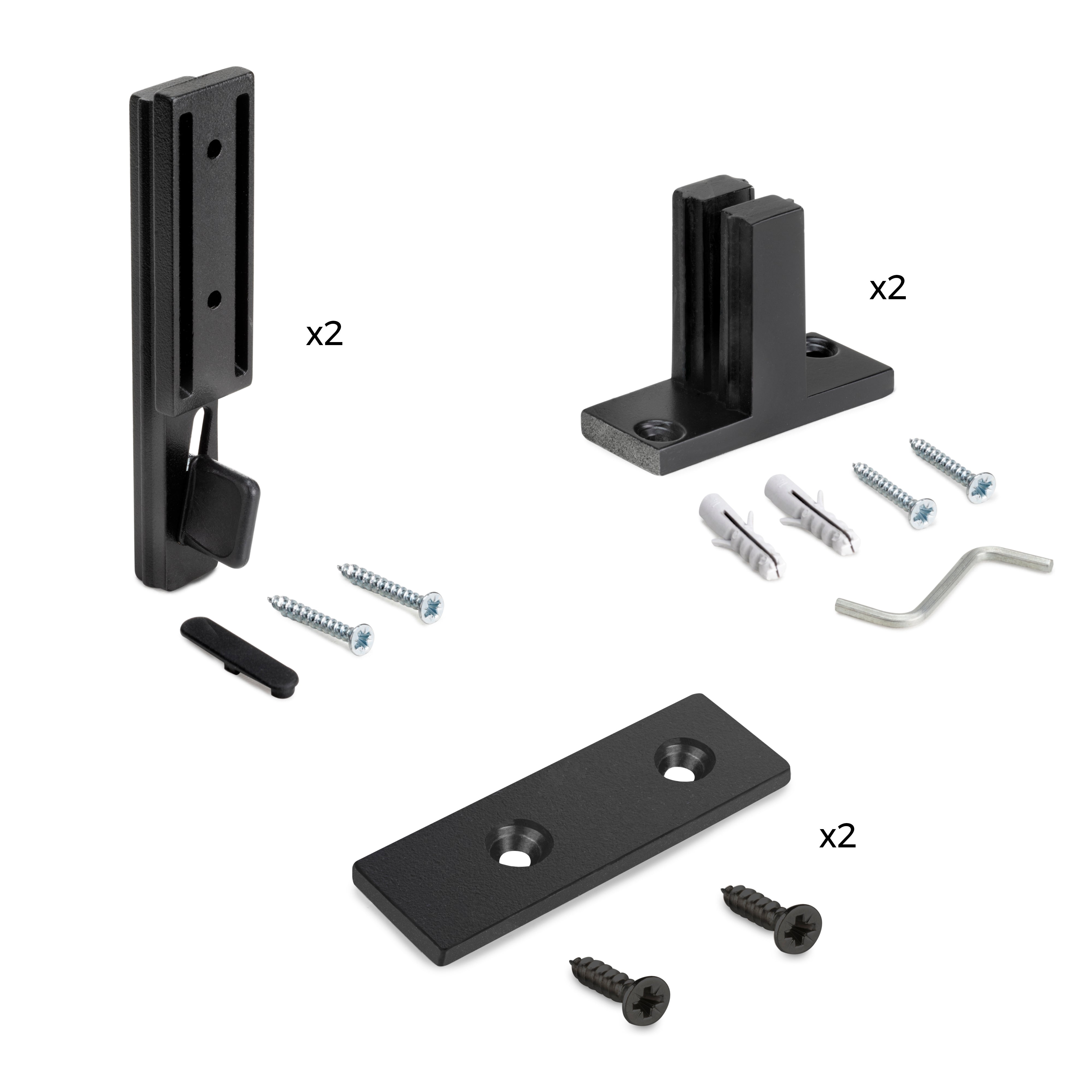Lot de 2 rame Zero cu fitinguri și profile, montaj pe podea și pe perete cu nivelatoare pectangulare, negru texturat, Emuca