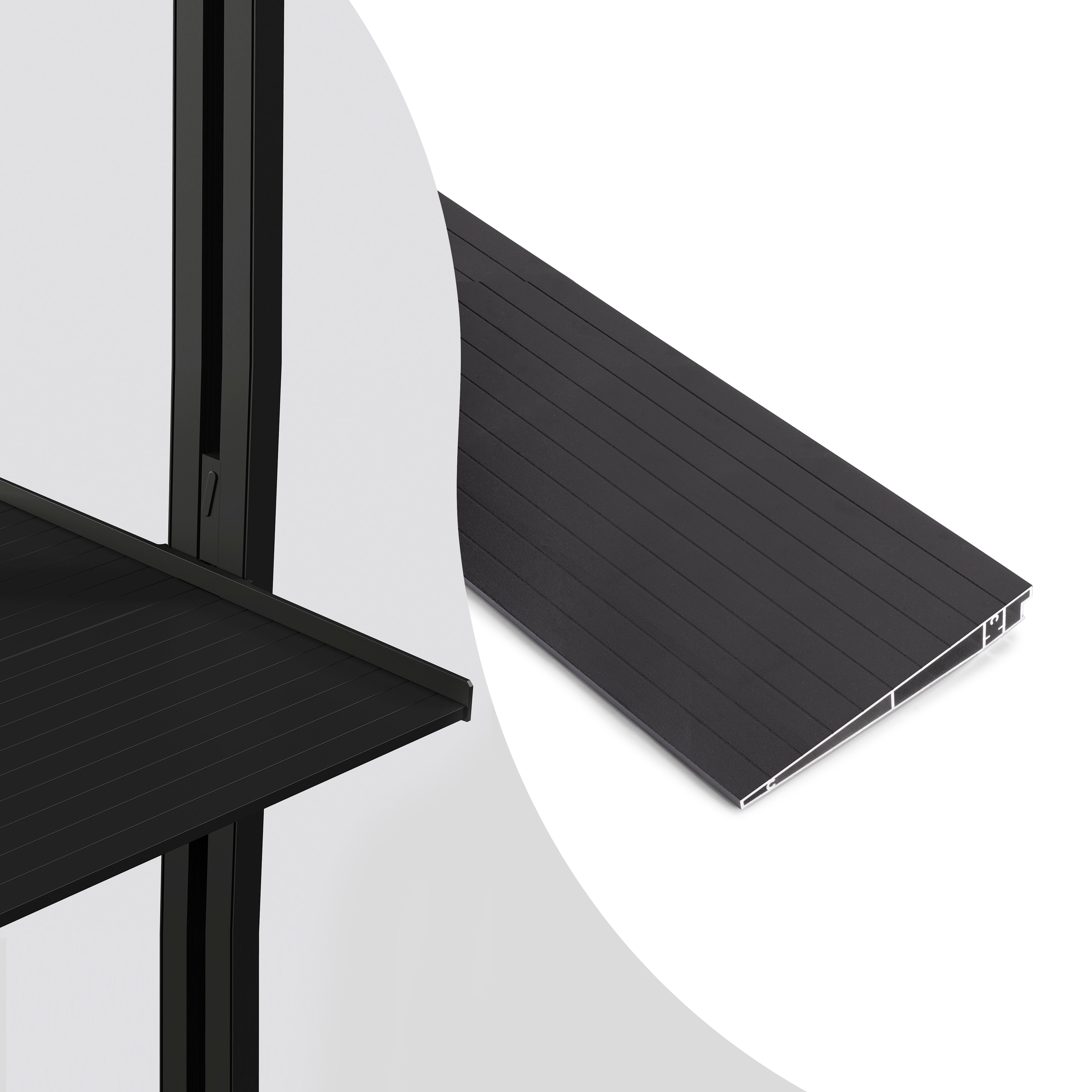 Lot de 3 rame Zero cu fitinguri și profile, montaj pe podea și pe perete cu nivelare dreptunghiulare, negru texturat, Emuca