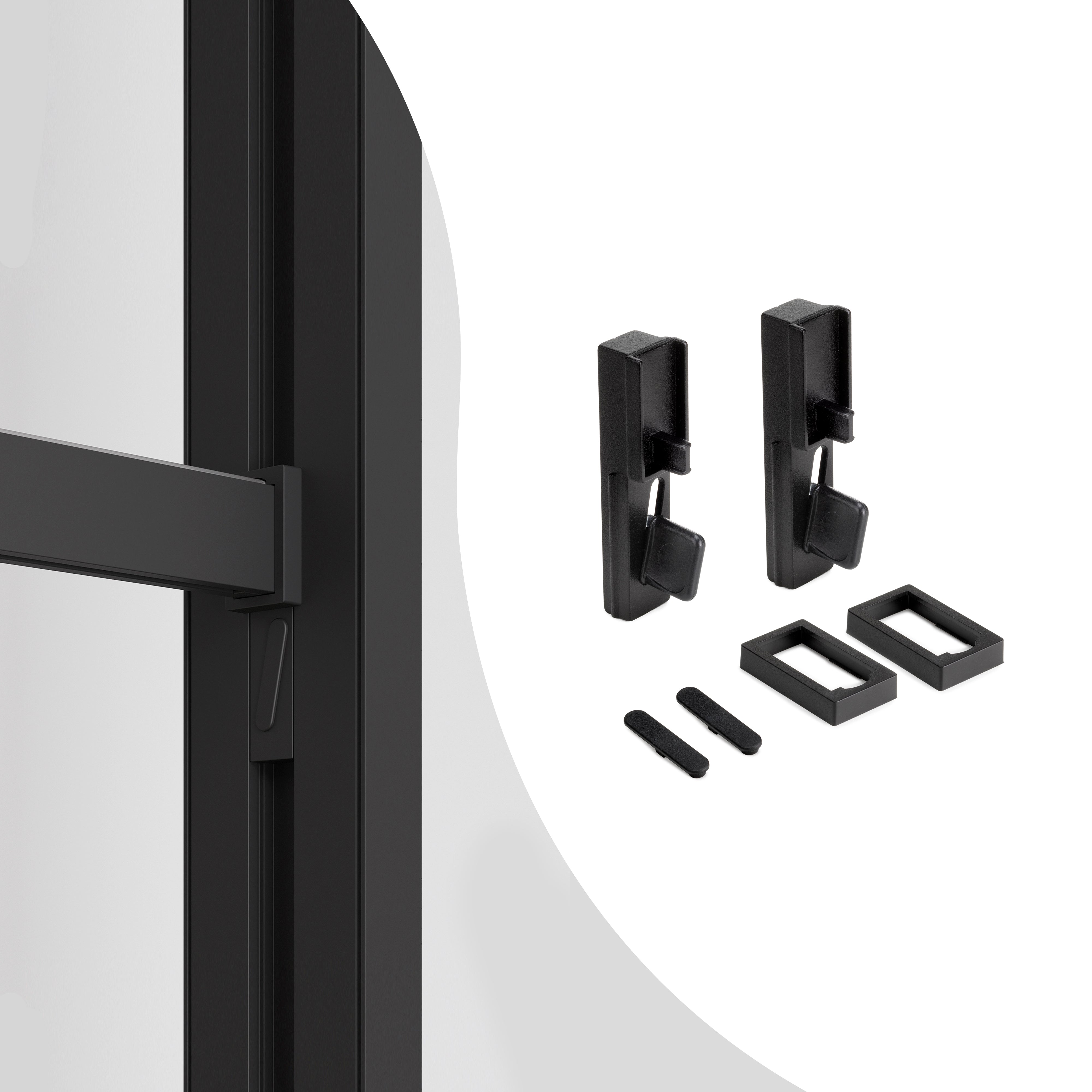 Pereche de elemente de fixare pentru cadrele dulapului Hack pentru structură modulară Zero, Negru texturat, Emuca