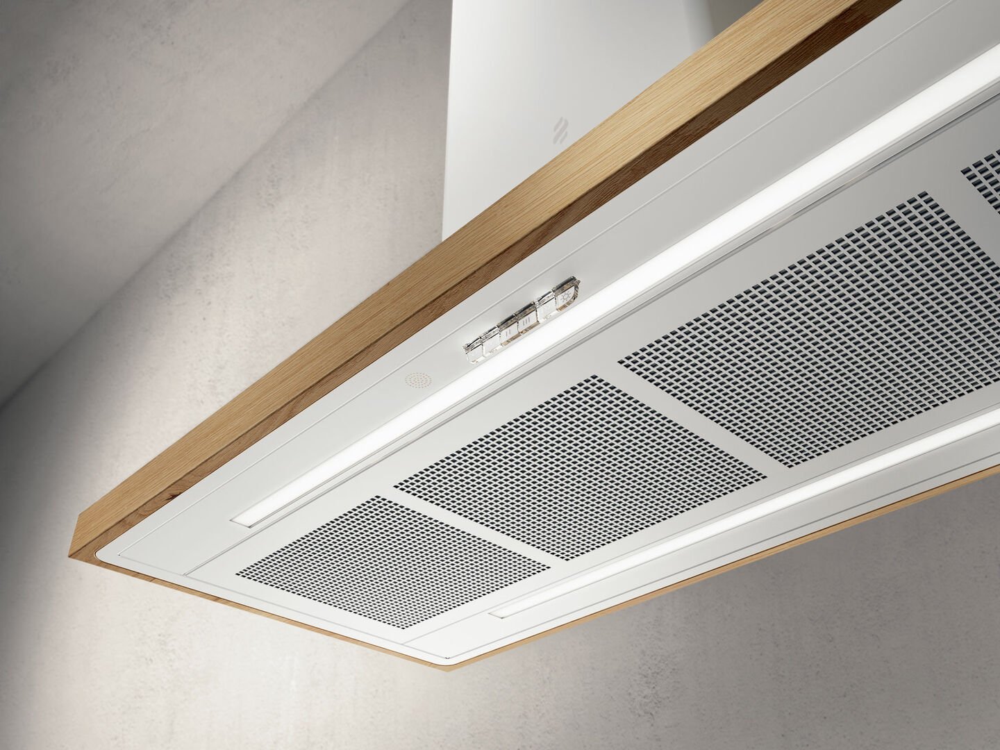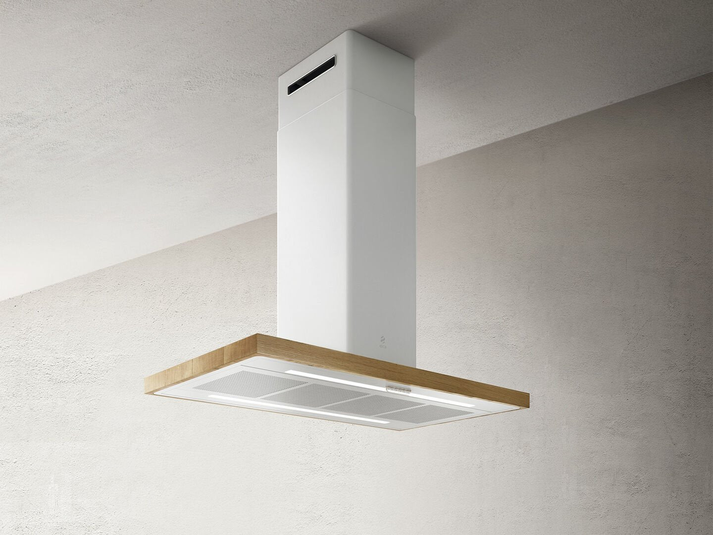 Hotă Albă/ Sticlă/Stejar natural Bio Island Montaj Pe Tavan 120 x 53cm WH/A/120X53 Rovere, Elica